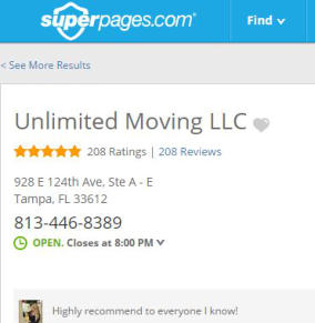 5 star company in and out. Thank you so much Unlimited moving for helping me with such short notice. MY brother will be giving you a call soon.